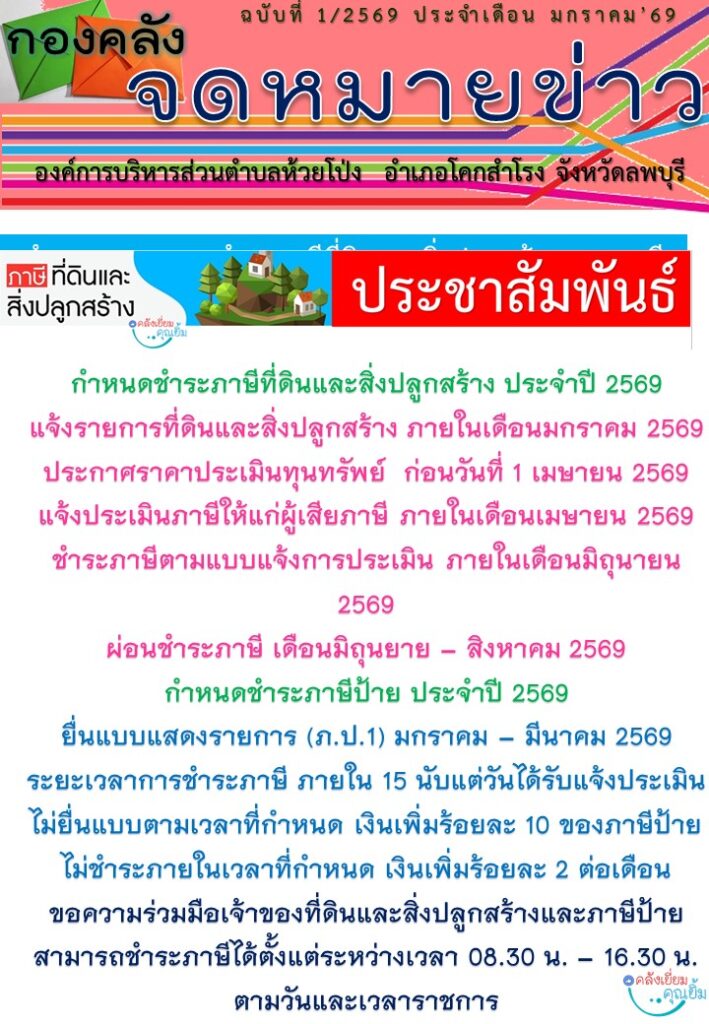 จดหมายข่าว กำหนดชำระค่าภาษีที่ดิน